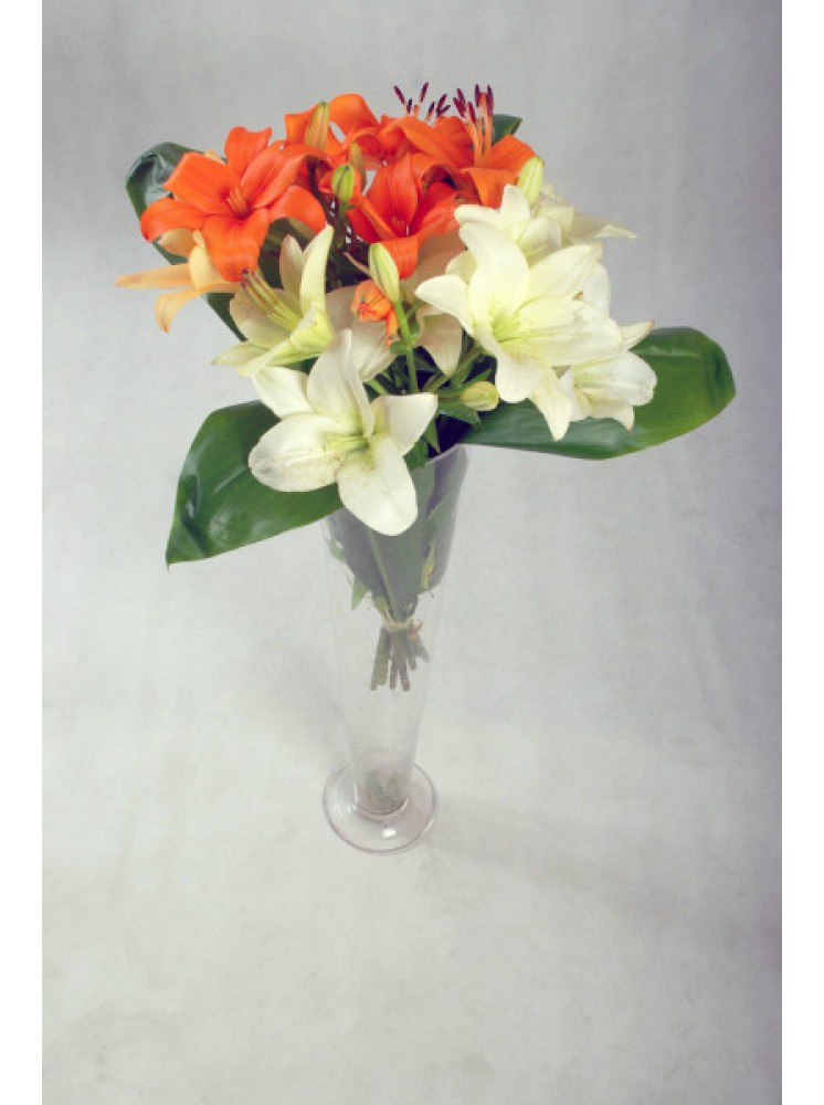 If you like lilies, then this set is certainly for you! a nice blend of lilies, comes with 2 colors, orange and white beautifully belnded in a glass vase.